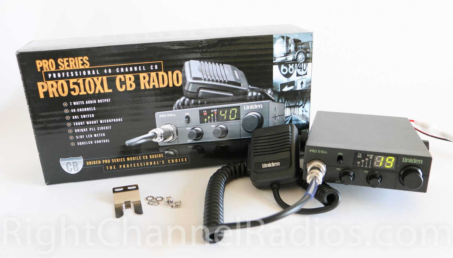 Radio: Choose between the Uniden 510 or Uniden 520 CB radios. These compact, durable radios will easily fit in the cab of your vehicle without taking up valuable space. The Uniden Pro 510 XL is the base model radio, while the 520 XL offers PA (public address) and RF gain functions. If you would like to have a PA system, make sure to select the Uniden Pro 520.